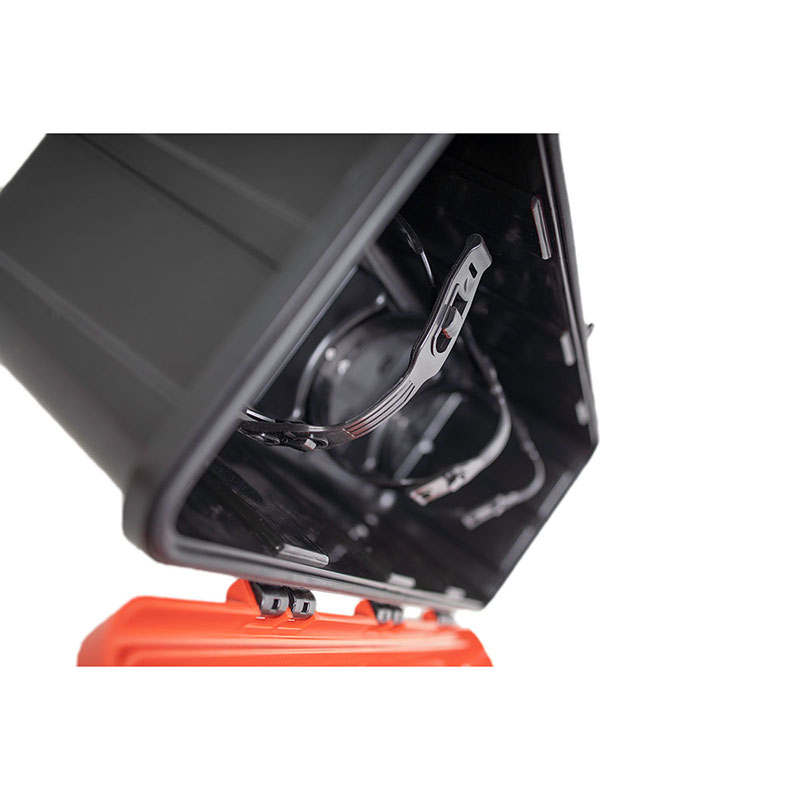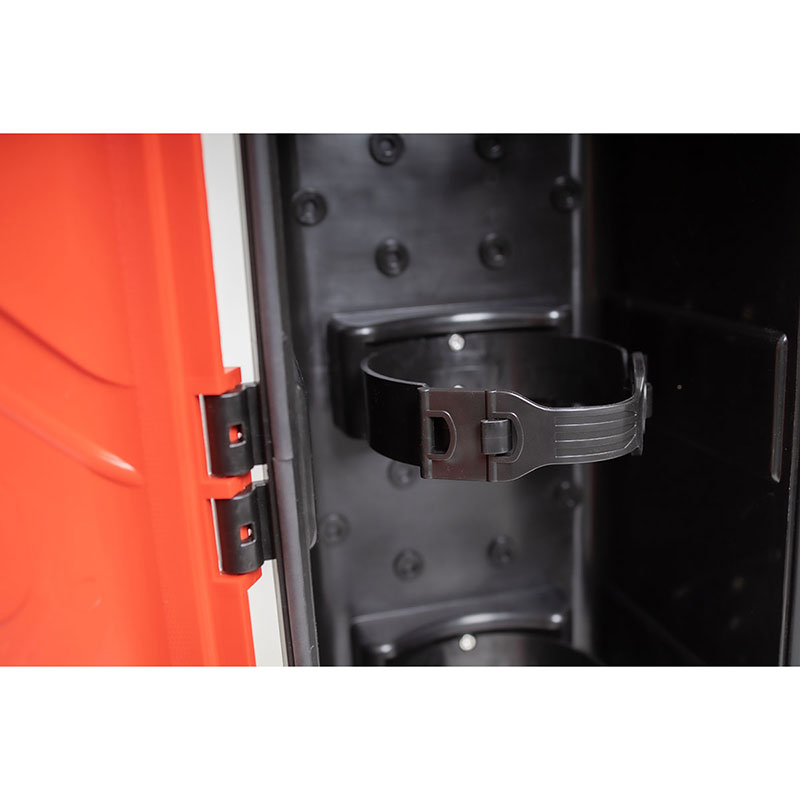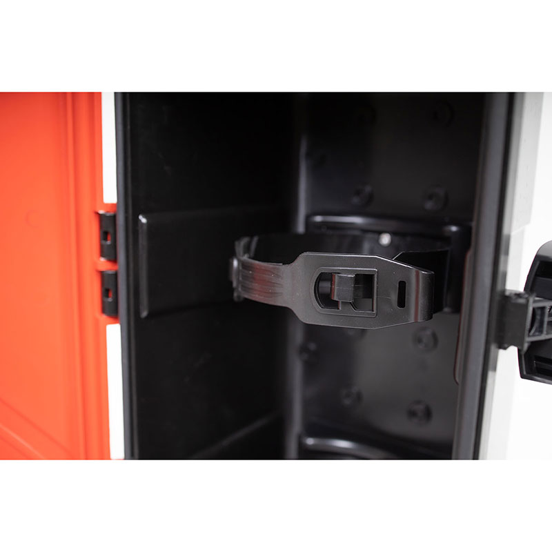 Огнетушитель надежно крепится в корпусе пенала при помощи хомутов и гибких ремней. Пенал для огнетушителя монтируется на корпусе грузового автомобиля через усиленные точки креплений на дне корпуса (24 шт.) и позволяет за короткое время получить доступ к огнетушителю, в случае возникновения пожара.