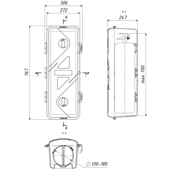 размеры вмещаемых огнетушителей – от ОП4 до ОП10* .